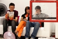 В последнее время продвинутая (или все-таки сдвинутая?) молодежь самые важные события старается переместить из области видимого и реального в некие параллельные миры. В мае монстранты мысленно поднимали здание мэрии на высоту пятисот метров, а на прошедших выходных участники выставки-перфоманса "Оранжевый шнурок" в Новосибирске открыли астральный туннель, в котором и должны были происходить самые интересные (то есть воображаемые) приключения. Туннель имел и визуальное воплощение: сквозь черную и красную рамочки со стеклом и проволокой на стену проецировался "глючный" видеоролик, представлявший выставку. Красная рамочка символизировала все хорошее, а черная – всяческий негатив.