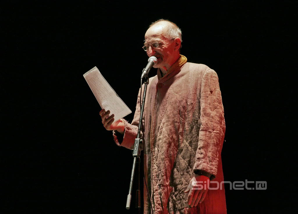 Петруша читал, комкал лист и швырял его в зал, комкал и швырял. И при этом орал: "Аааау! Аааау! Евтушенко вряд ли так кричит. Когда я вот так вот дома, внучок мне говорит: "Хватит, деда, хватит"". Огорчился, что пластилин в Новосибирск не захватил: бумажки далеко не летали.